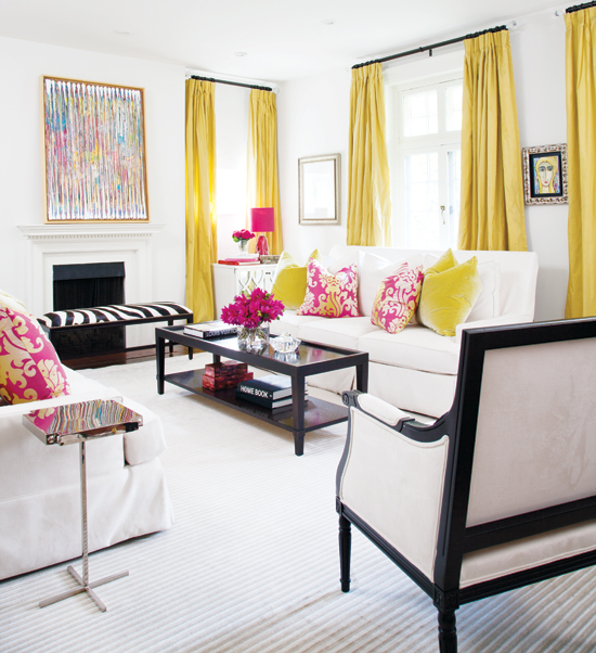 I don't know what's with me, and my obsession with yellow lately, but I'm really loving it! Maybe it's all of the beautiful sunshine that we've been enjoying here in Ottawa. Typically, my home doesn't have a lot of yellow in it...the only yellow right now is a throw pillow and some flowers. These homes make me want to scrap everything I have and start from scratch!